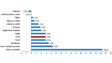 Bir önceki yılın aynı ayına göre en az artış gösteren ana grup %26,14 ile ulaştırma oldu.