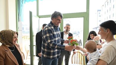 Başkan Kocaman çiçek dağıttı