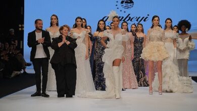 İzmir’de düzenlenen gelinlik ve abiye defilesinin yıldızı “Çizmeli Gelin” Özge Ulusoy’du… Melik Günbeyi, İzmir Gelinlik ve Abiye Fuarı’nda 40 parçalık…